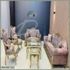 أضف لمسة من الرقي لغرفة معيشتك مع طقم الكنب الذي يجمع بين فن الحفر الذهبي والقماش المخملي الفاخر. تصميم صُمم ليدوم، وبألوان تناسب الذوق الرفيع.